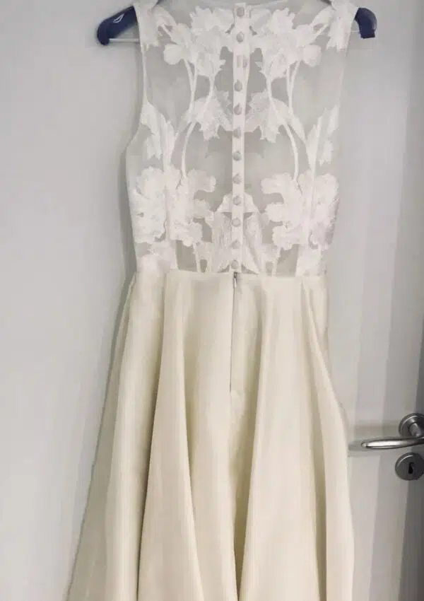Du suchst noch ein Brautkleid für deine Hochzeit. It has sweet and lovely short lace sleeves and a medium rise cleavage both in the front and in the back which will make you feel incredibly feminine and elegant.